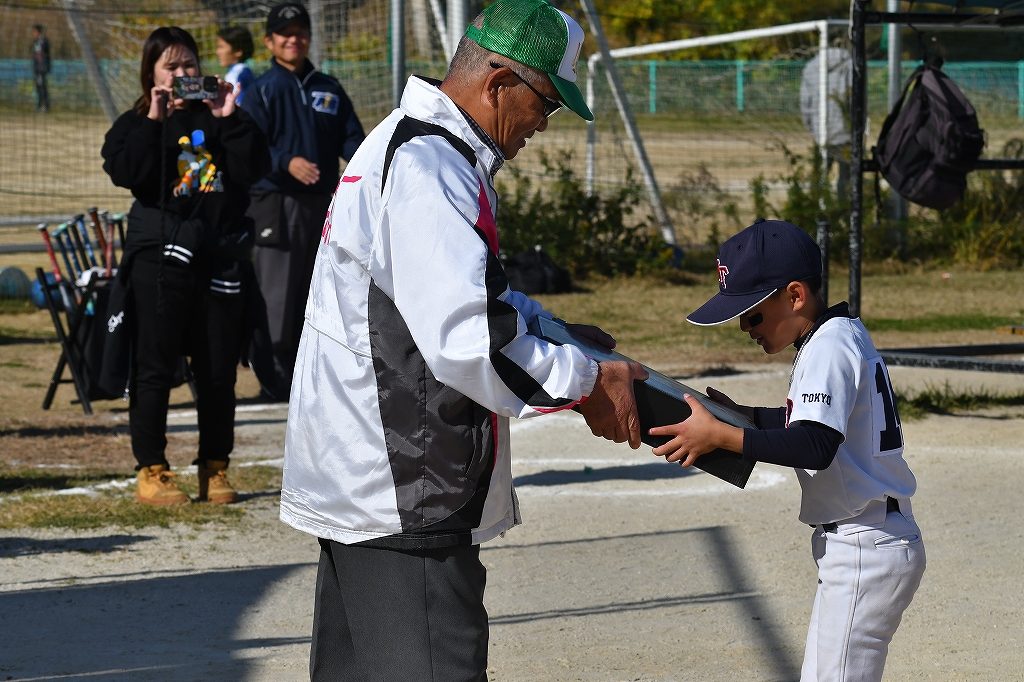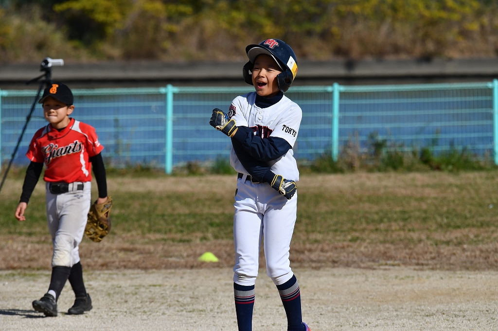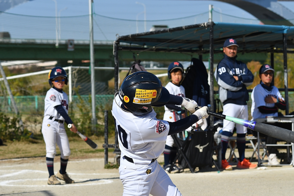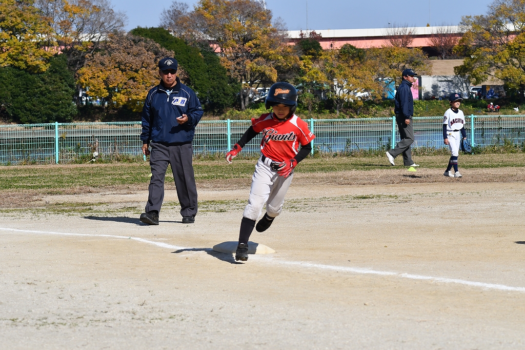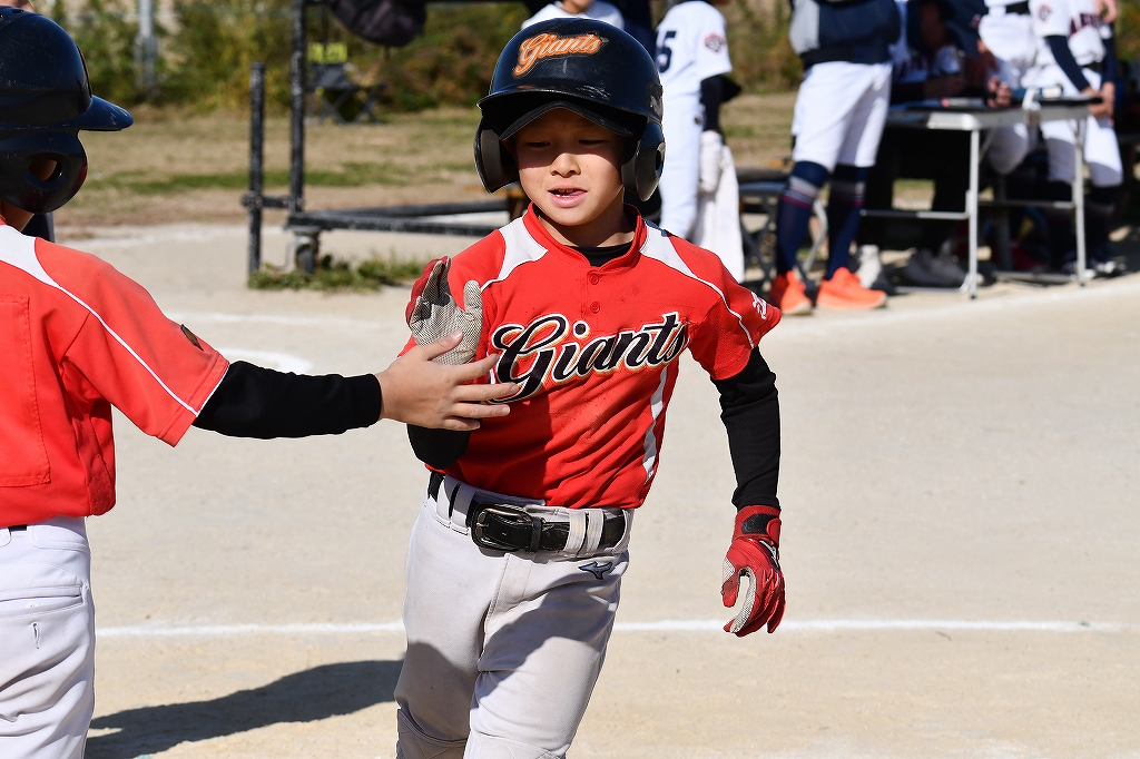 そして深川ジャイアンツK君のホームラン!K君、キミはこの大会で何本ホームラン打った??というくらい打ちまくってます。このボールをとらえるセンスとボールを飛ばす能力は、ほんまもんですね!すごい!!
