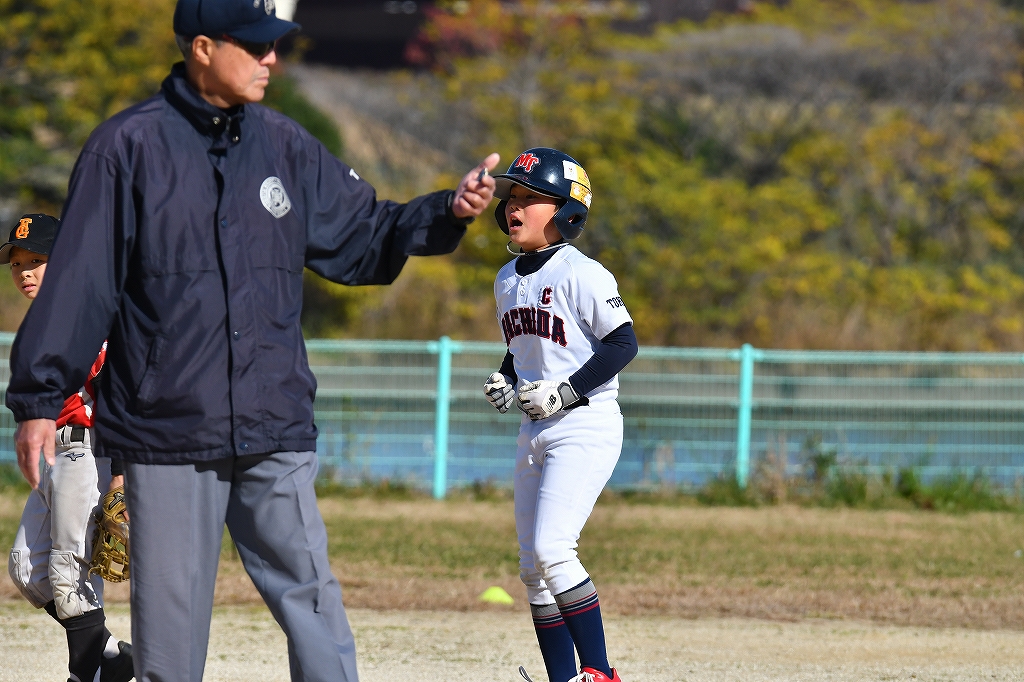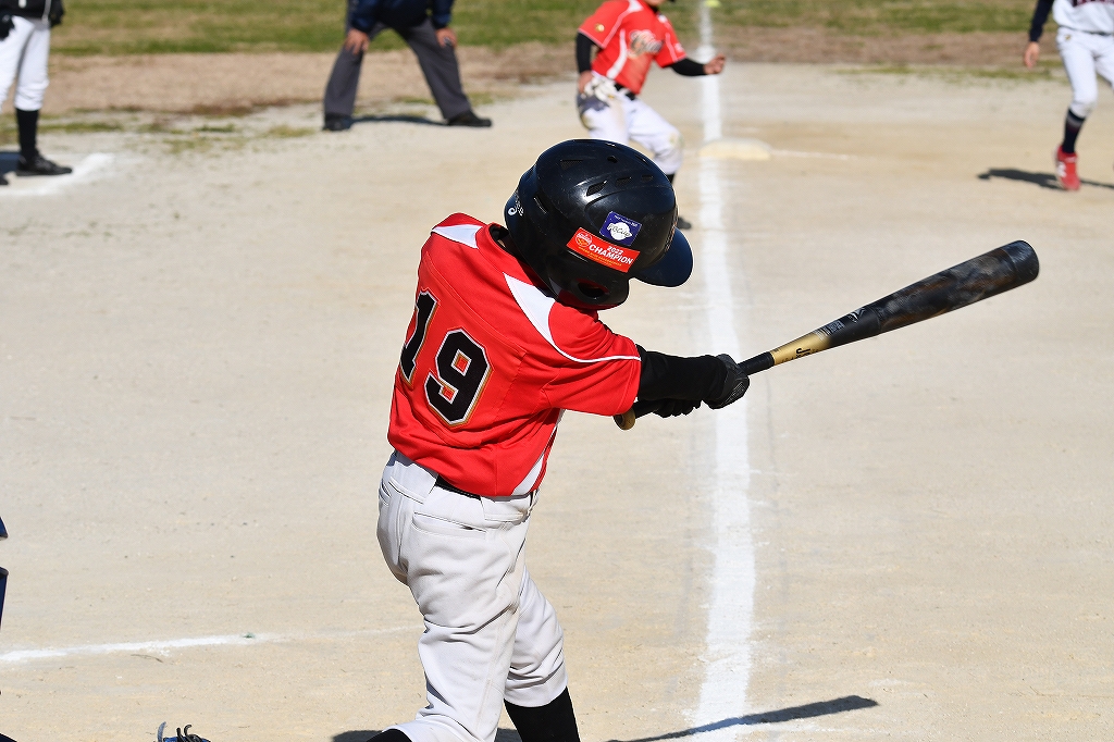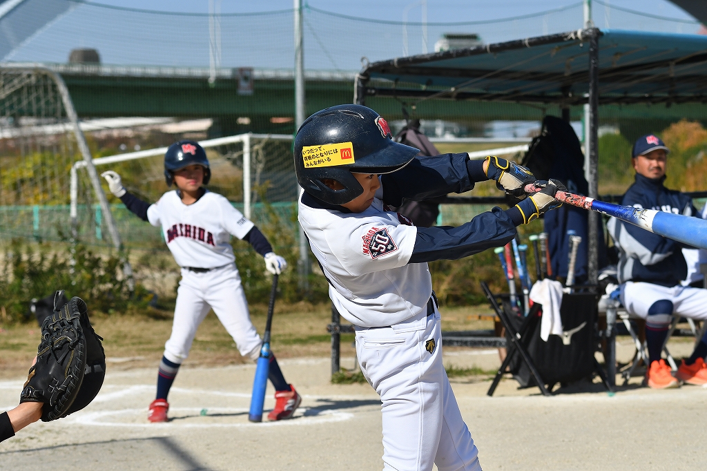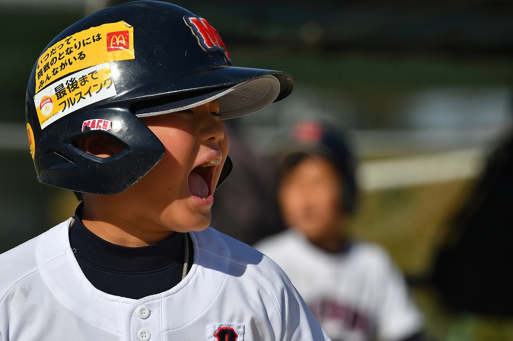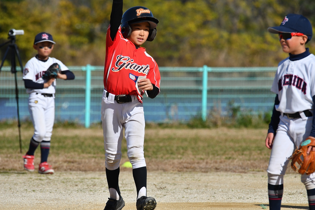 そして深川ジャイアンツK君のホームラン!K君、キミはこの大会で何本ホームラン打った??というくらい打ちまくってます。このボールをとらえるセンスとボールを飛ばす能力は、ほんまもんですね!すごい!!